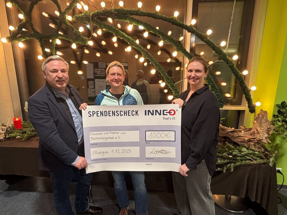 Große Freude an der Buchenbergschule: Die internationale operierende Ellwanger Firma Inneo hat dem Schulförderverein "Freunde und Förderer der Buchenbergschule e.V." eine Spende über 1000 Euro zukommen lassen.