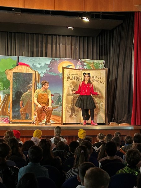 Die Oper selbst nahm das junge Publikum mit auf eine musikalische Reise durch die Märchenwelt. Bekannte Figuren tauchten überraschend auf, es wurde gesungen, gelacht und mitgefiebert. Einige Schüler und Schülerinnen wurden dabei als Lebkuchenkinder und Schneeflocken direkt in das Spiel eingebunden. Begeistert sangen alle Kinder das bereits im Musikunterricht vorbereitete Lied „Es war einmal…“ Besonders beeindruckend war, wie lebendig und kindgerecht die Opernretter klassische Musik, Gesang und Theater verbanden – und dabei ganz ohne Scheu zu Mitmachen einluden.